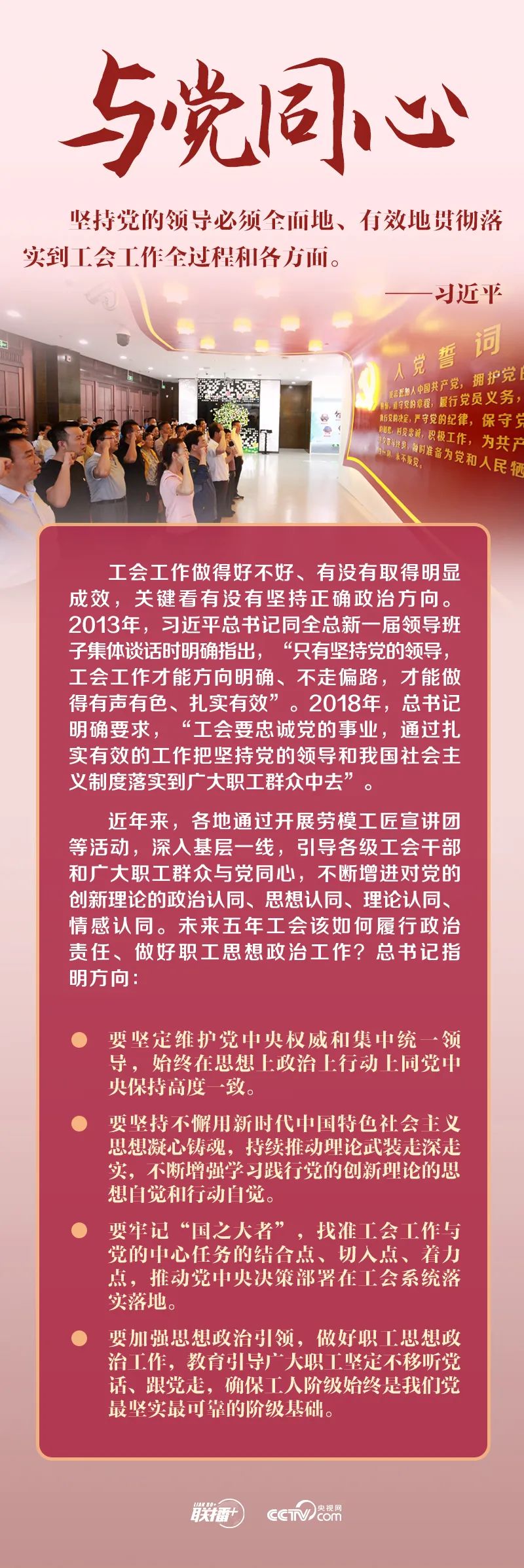 “堅(jiān)持黨對(duì)工會(huì)的全面領(lǐng)導(dǎo),任何時(shí)候、任何情況下都不能動(dòng)搖、不能偏離。”
